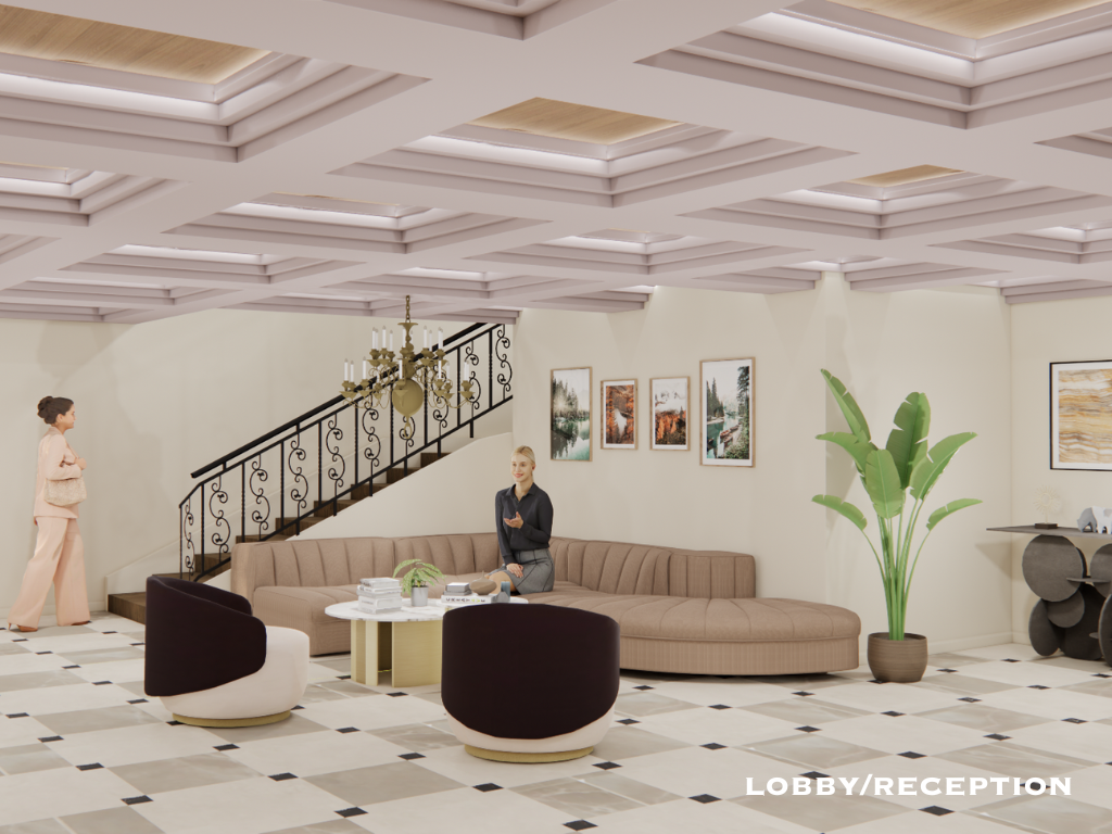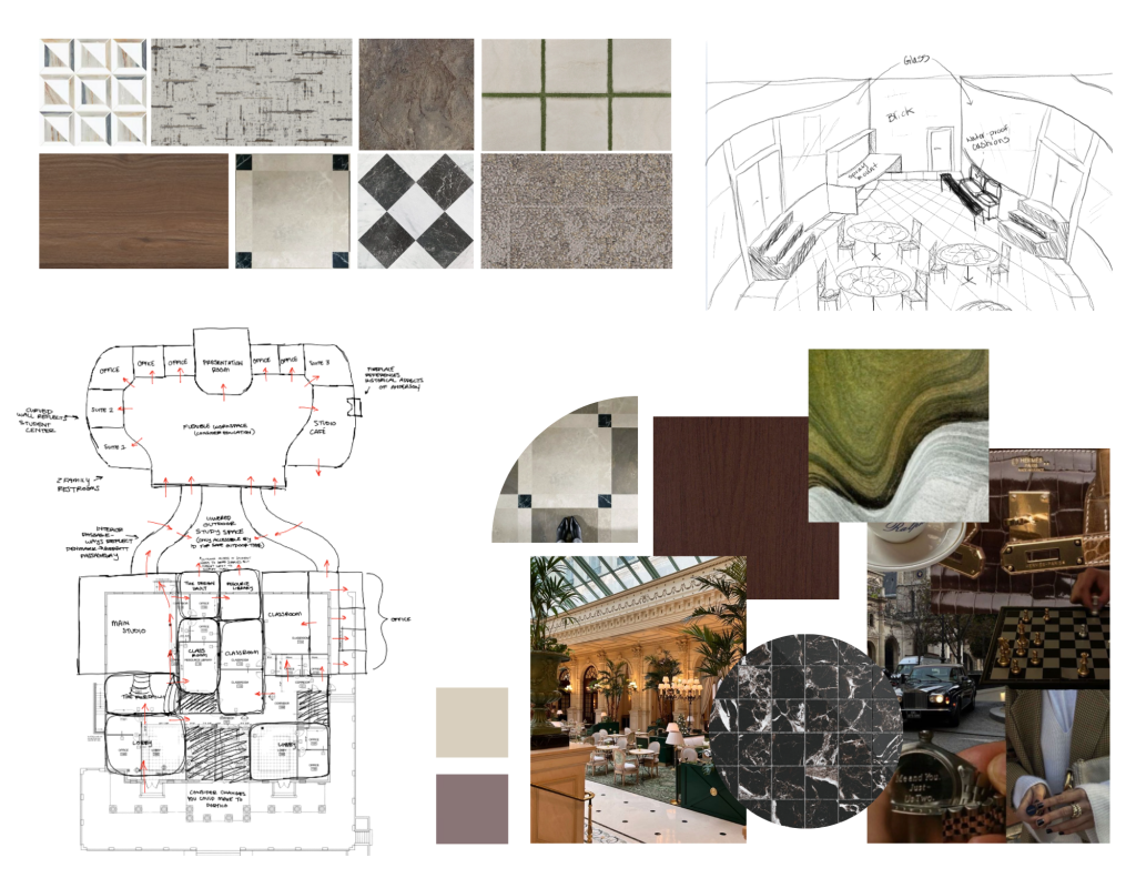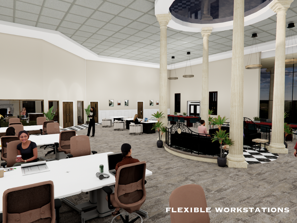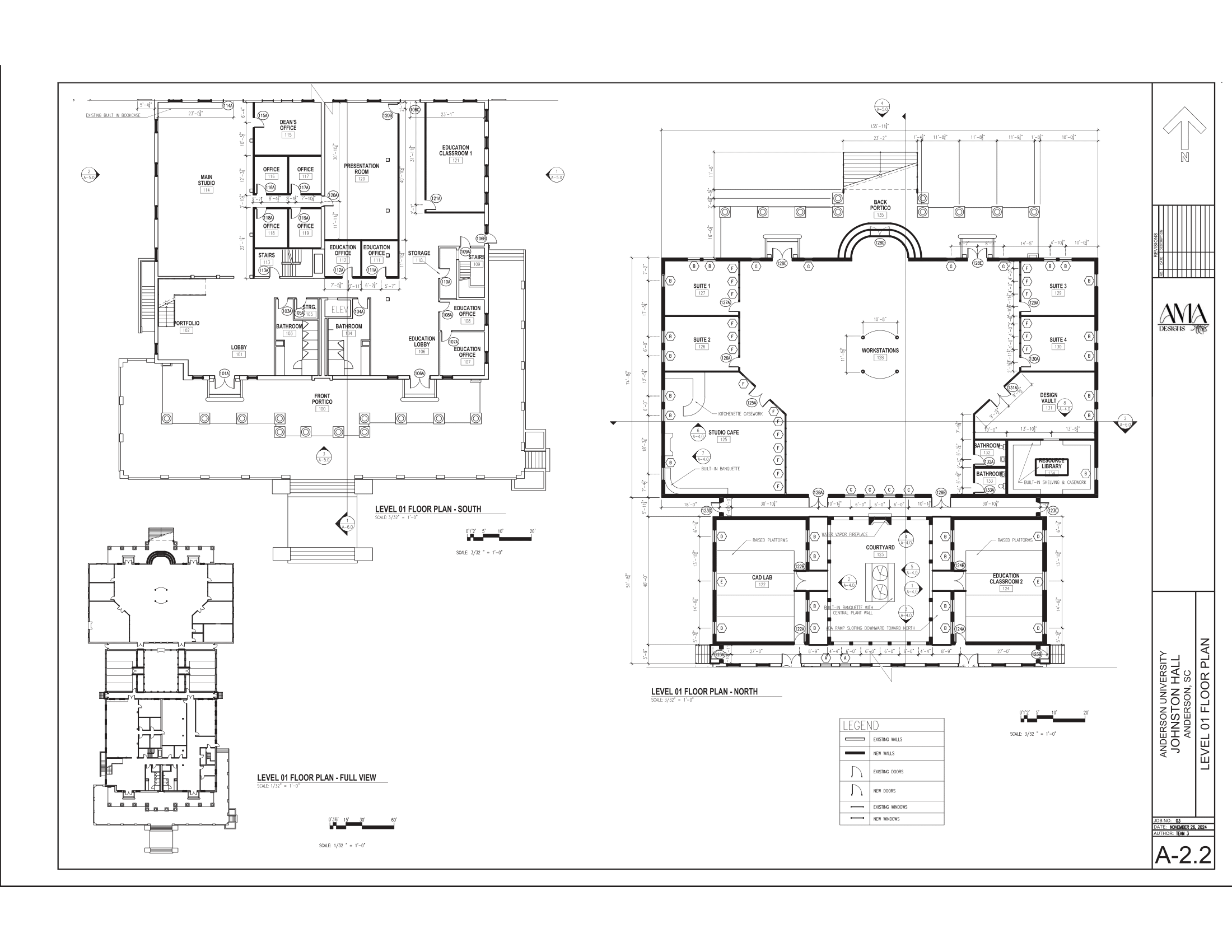Located at Anderson University, Johnston Hall has received an increase in student and faculty size and needs a renovation. Considering the wants and needs of the users, we implemented a cafe, courtyard, study/tutoring rooms, a large flexible workspace, and supplies storage, among other necessary spaces. Additionally, to preserve Anderson University’s architectural style, this design will incorporate the Greek Revival style in fusion with Neoclassical elements which will be established through muted neutral tones, classic tile and brick, high ceilings, and gold fixtures.
