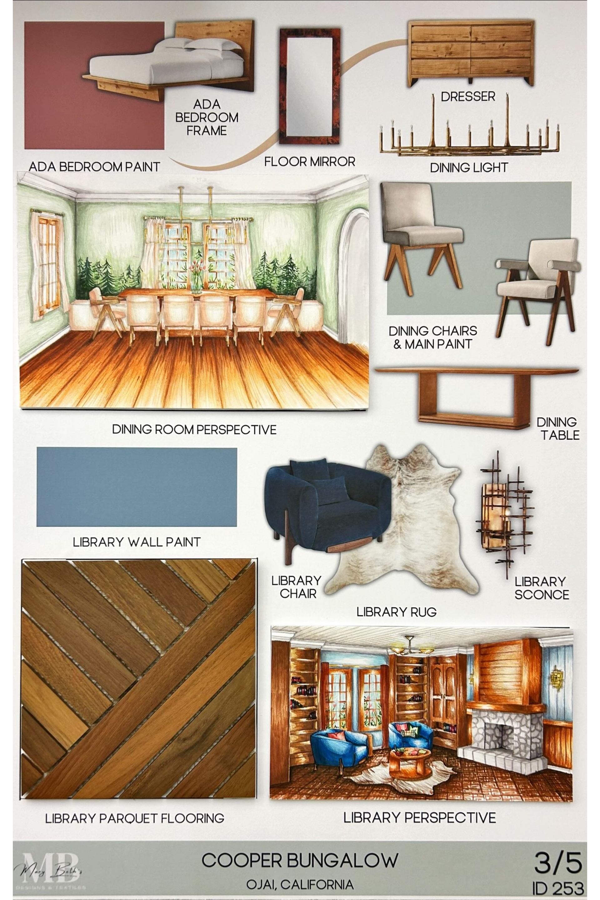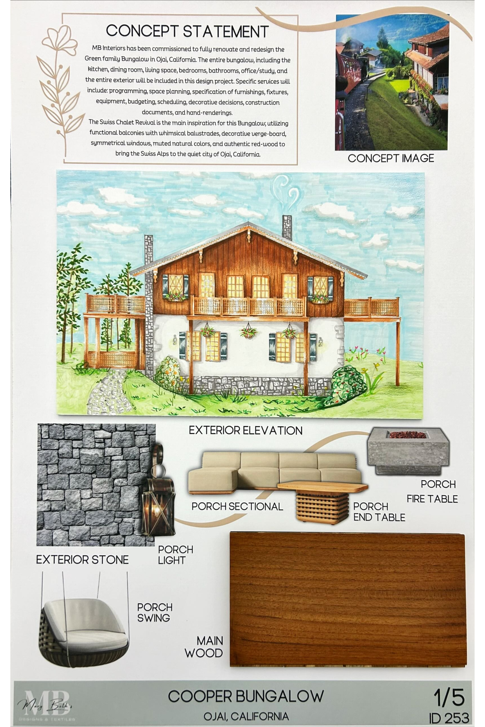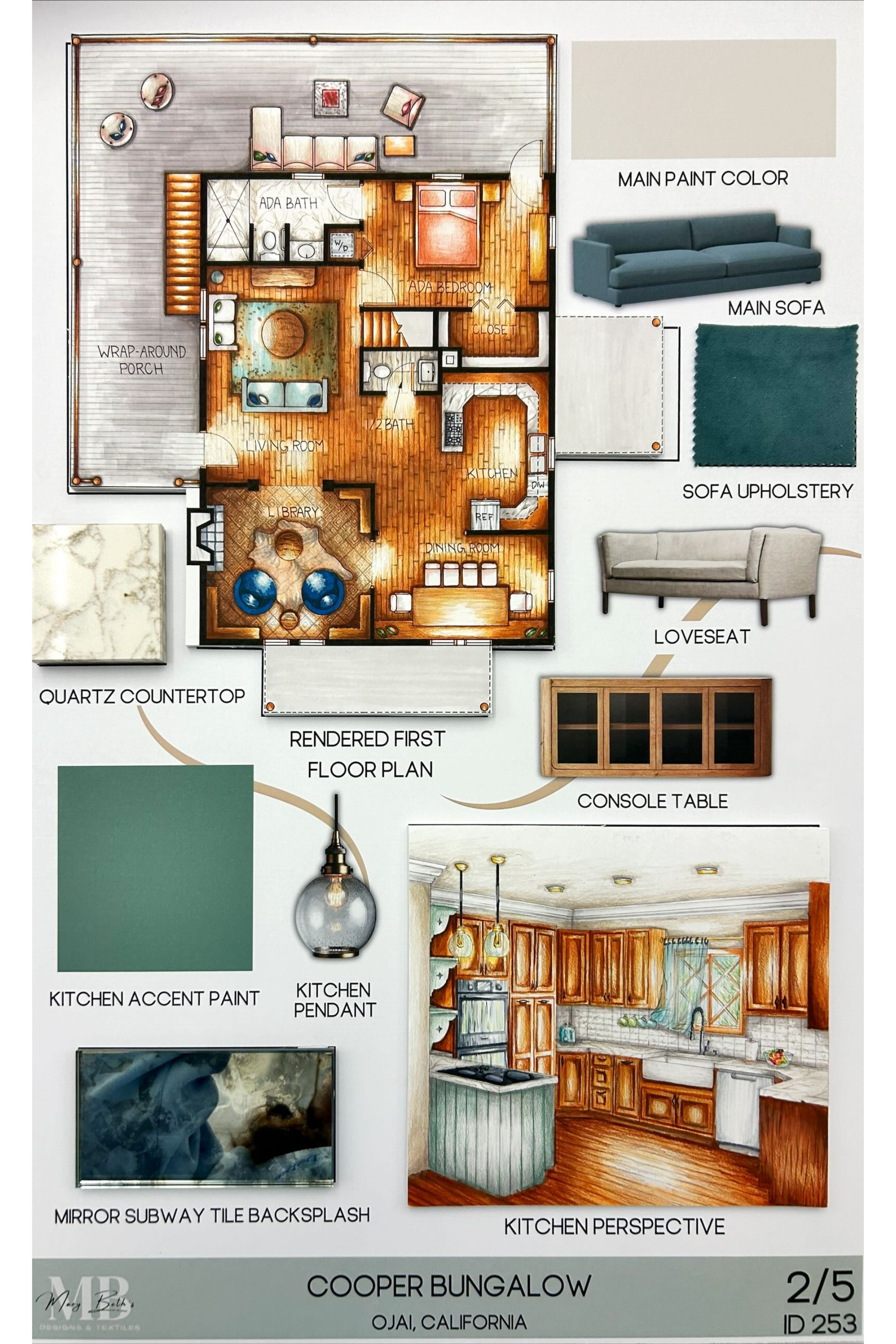 For this project, I was assigned to renovate a two-story bungalow to the style of my choice. By generating construction documents, hand renderings (marker & colored pencil), FF&E selections, SPEC sheets, budgeting, schedules, and presentation materials, I fully renovated a bungalow to fit the style of the Swiss Chalet Revival. In this project, the main priority was making the home ADA accessible, considering details such as grab bars, accessible counter heights, accessible appliances, and more.